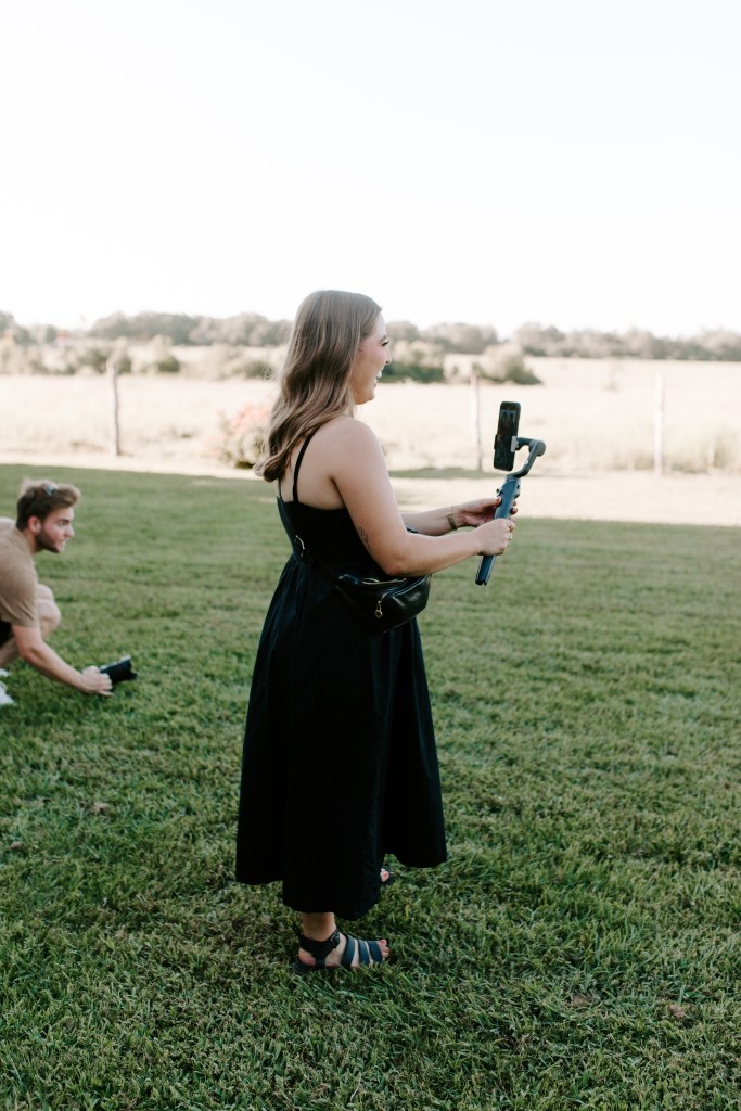 It all began with a part-time job. As an on-site venue manager at Stonehouse Villa, a stunning venue in the Texas Hill Country, I had the privilege of witnessing countless weddings. Time and time again, I watched couples rely on their wedding party to capture snippets of their big day on iPhones, hoping to relive those moments instantly. It was during one of these shifts that inspiration struck: what if this responsibility didn’t have to fall on friends or family? What if a professional could take on this role with an artistic eye and a focus on storytelling? And just like that, the idea for Content by Clarice was born.